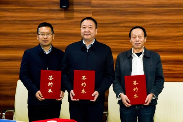李虹杰、劉少輝和地大環(huán)境學(xué)院院長(zhǎng)史建波共同簽訂捐贈(zèng)協(xié)議,并為監(jiān)測(cè)設(shè)備揭幕。