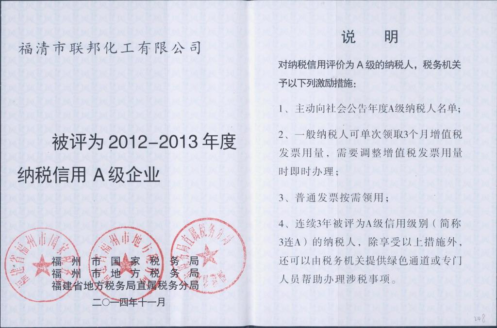 納稅信用A級單位